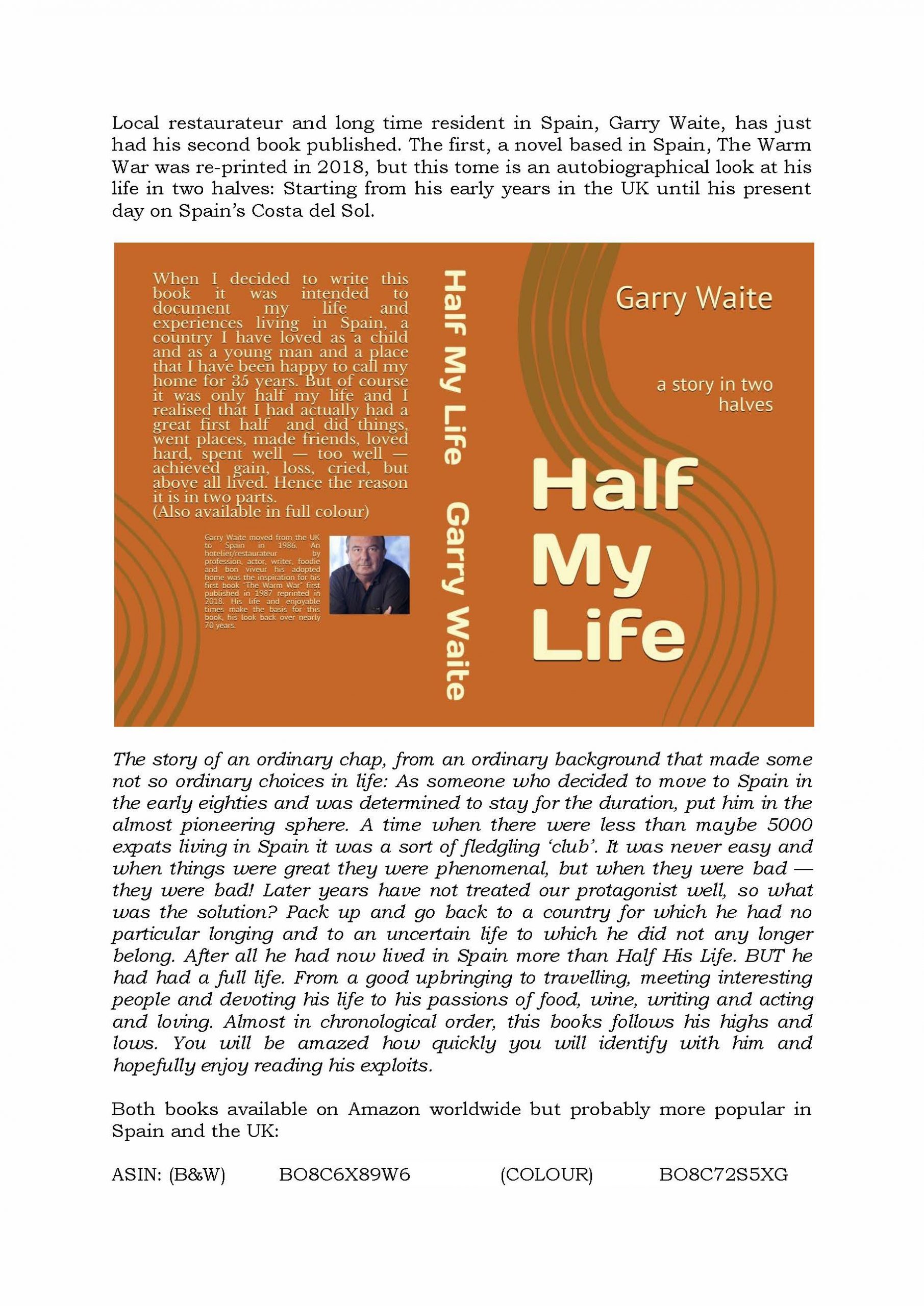 I moved to Spain in January 1986 with the guidance of Barrie Nathan. Despite my initial lack of Spanish, I was determined to continue my career in the hotel and restaurant business. If you're interested in learning more, you can find my book, Half My Life, on Amazon or purchase signed copies from me.